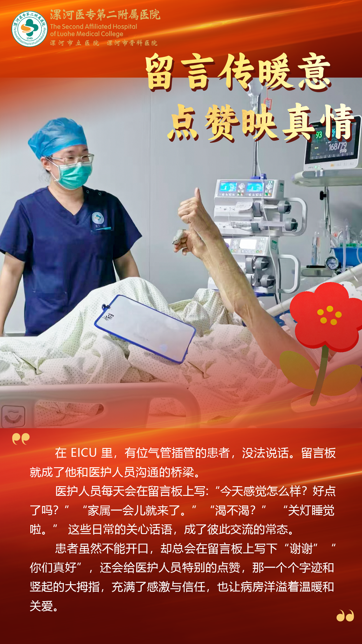 漯河市骨科醫(yī)院:最美“醫(yī)”瞬間 留言傳暖意 點贊映真情