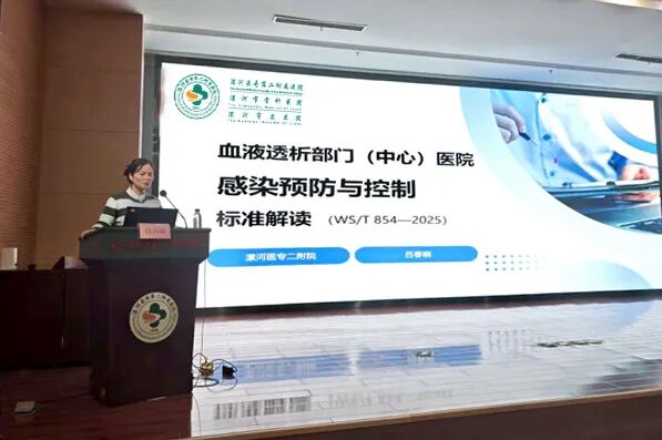 規(guī)范與賦能并重,夯實安全基石。 在質(zhì)量安全層面,漯河醫(yī)專二附院血液凈化室護士長呂春曉對《血液透析部門(中心)醫(yī)院感染預防與控制標準》進行了權(quán)威解讀,從建筑布局、人員管理、操作流程、監(jiān)測要求等多個方面,深入講解了標準的核心要點,為各醫(yī)療機構(gòu)落實規(guī)范化管理、確保患者安全提供了依據(jù)。由漯河市婦幼保健院血液凈化室護士長劉曉靜與臨潁縣人民醫(yī)院血液凈化室護士長陳曉夢主持會議。
