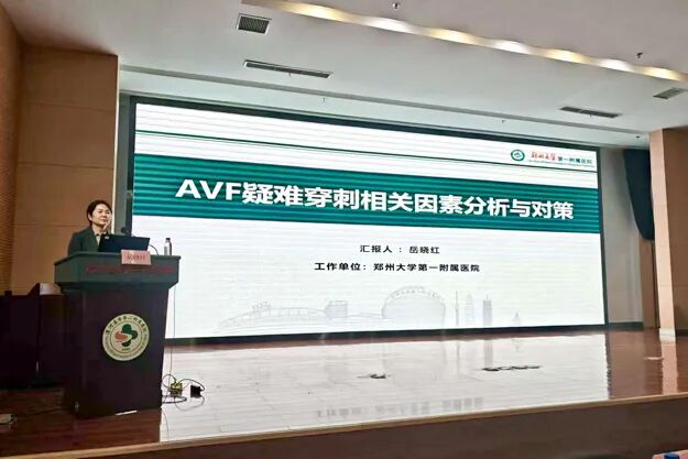 中華護理學會血液凈化專業(yè)委員會委員、鄭州大學第一附屬醫(yī)院血液凈化中心護士長岳曉紅以《AVF疑難穿刺相關(guān)因素分析與對策》為題,從精準評估、穿刺、超聲輔助、團隊協(xié)作幾個方面,分析了動靜脈內(nèi)瘺穿刺困難的各類因素,分享了一系列實用、有效的解決方案。由漯河市第二人民醫(yī)院血液凈化室護士長朱潔與舞陽縣人民醫(yī)院血液凈化室護士長苗保紅主持會議。