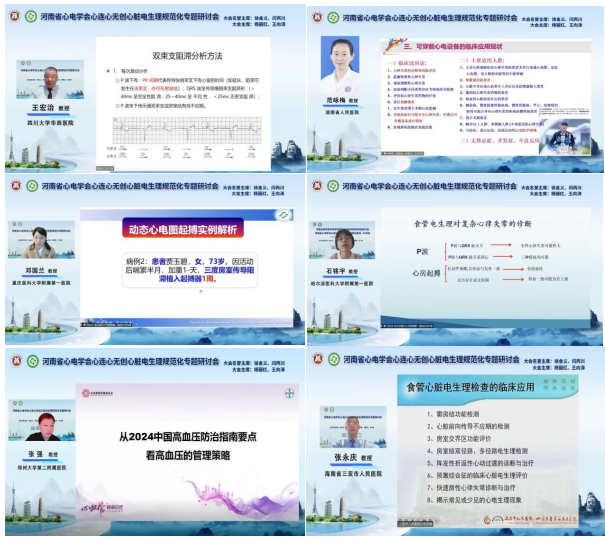 在隨后的學術講座中,河南省人民醫(yī)院徐金義、楊麗紅、王慶義、李涵,漯河市中醫(yī)院張茜、陳云、王向濤分別授課,題目為《經(jīng)典心律失常的規(guī)范化診斷與精要解讀》、《心血管特殊人群運動試驗的適應證拓展與安全性保障》、《心房波的“放大鏡”--深度解讀食管心電圖》、《肺功能檢查的規(guī)范化臨床應用與報告解讀》、《平板運動試驗的臨床應用》、《臨床常見危急值心電圖》、《平板運動試驗的風險及處理》等學術講座。會場氣氛熱烈,學術氛圍濃厚。