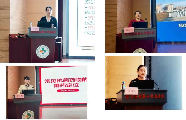 培訓(xùn)環(huán)節(jié),急診重癥監(jiān)護(hù)室主任王春枝、藥學(xué)部抗感染臨床藥師劉會(huì)茹、藥學(xué)部抗感染臨床藥師蔣玉龍、檢驗(yàn)科副主任張?jiān)铝?,分別圍繞《是治療,還是打擾?-重新審視我們的抗菌藥物處方》《我院抗菌藥物應(yīng)用存在問(wèn)題及分析》《常見(jiàn)抗菌藥物的用藥定位》《微生物標(biāo)本規(guī)范采集》進(jìn)行內(nèi)容分享。