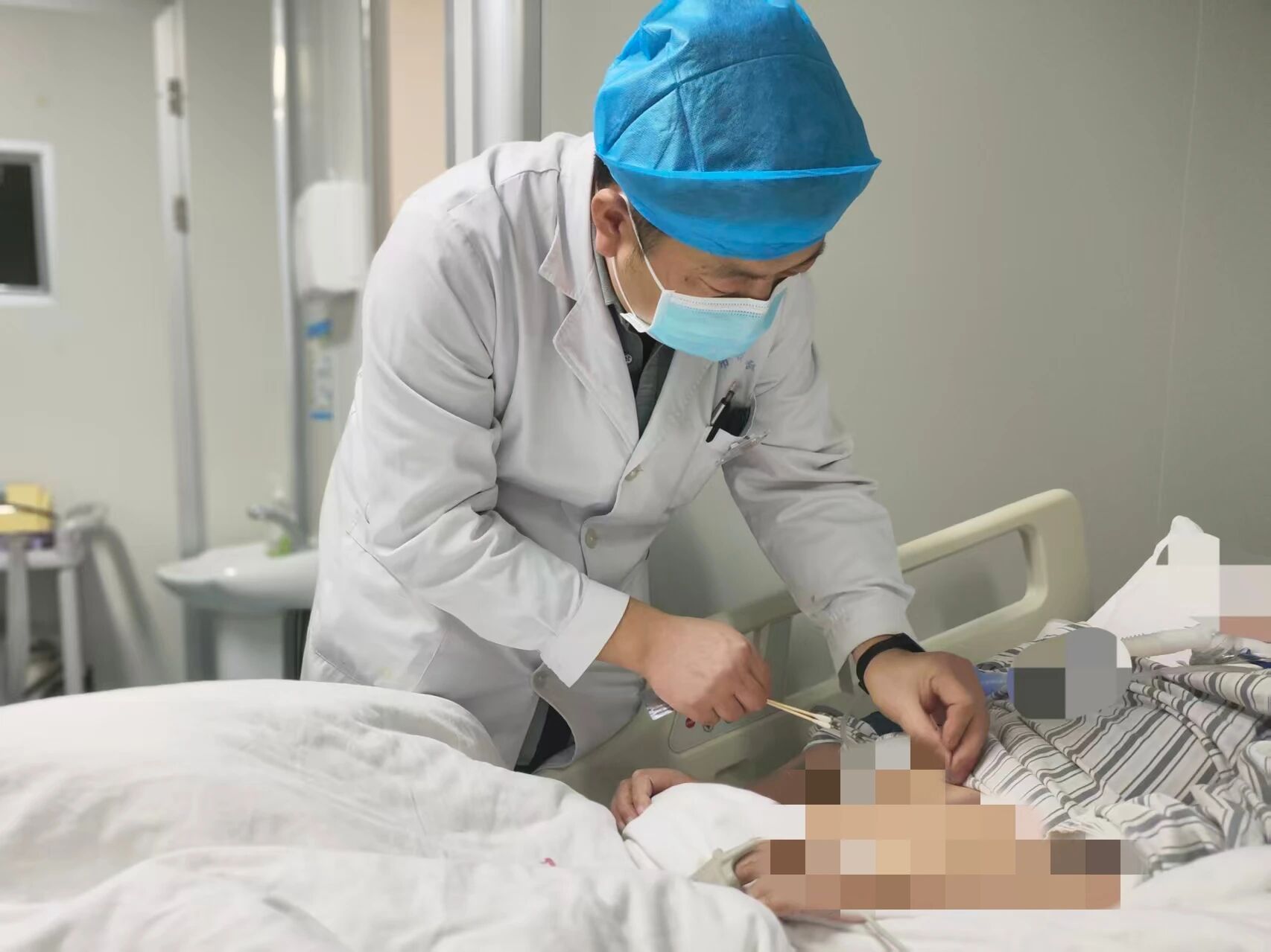治療期間,患者出現(xiàn)嚴重腹脹,影響營養(yǎng)吸收與呼吸功能,西藥治療緩解不佳。康復科團隊及時介入,發(fā)揮中醫(yī)優(yōu)勢:通過針灸、中藥灌腸、中藥外敷、耳穴壓豆等綠色中醫(yī)療法,與西醫(yī)治療形成互補,腹脹難題得以緩解,為全面康復掃清障礙。
