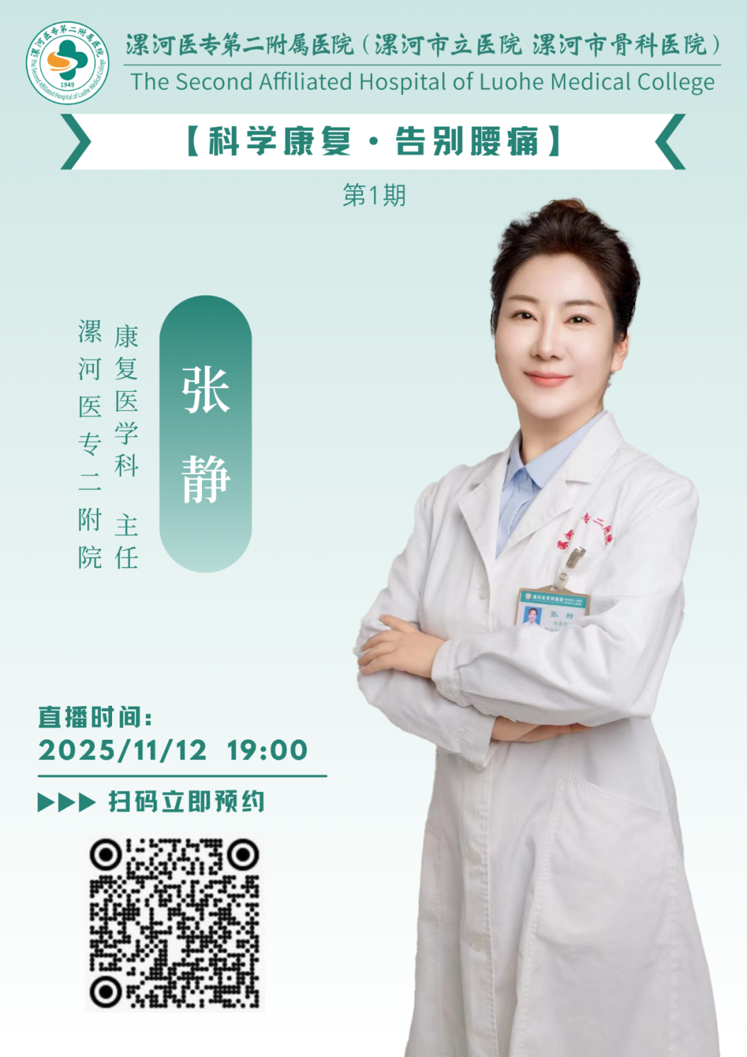 直播預告|漯河醫(yī)專二附院健康科普“云直播”第一期 科學康復?告別腰痛