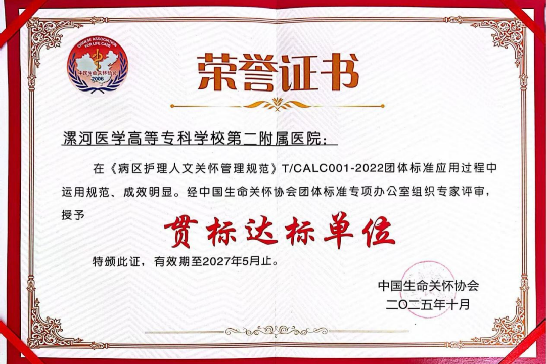 ■ 榮獲全國“病區(qū)護理人文關懷團體標準貫標達標單位”稱號