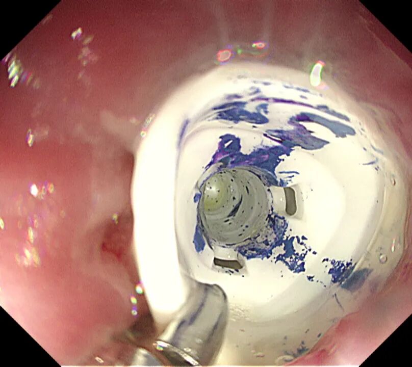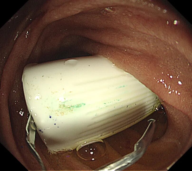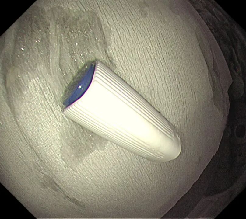 時(shí)間不等人,雖已臨近晚7點(diǎn),市二院第一時(shí)間啟動應(yīng)急響應(yīng)機(jī)制,內(nèi)鏡室、麻醉科醫(yī)護(hù)技立即返崗就位,并經(jīng)院辦等職能部門積極協(xié)調(diào),盡可能縮短術(shù)前準(zhǔn)備時(shí)間,迅速制定了取出異物的方案。隨后,在全身麻醉下,朗朗安然入睡,醫(yī)生通過纖細(xì)的胃鏡,精準(zhǔn)地找到了那個“惹事”的筆帽位于十二指腸內(nèi),并順利將其取出。整個過程僅用時(shí)十幾分鐘,朗朗術(shù)后很快蘇醒,觀察無礙后平安回家。