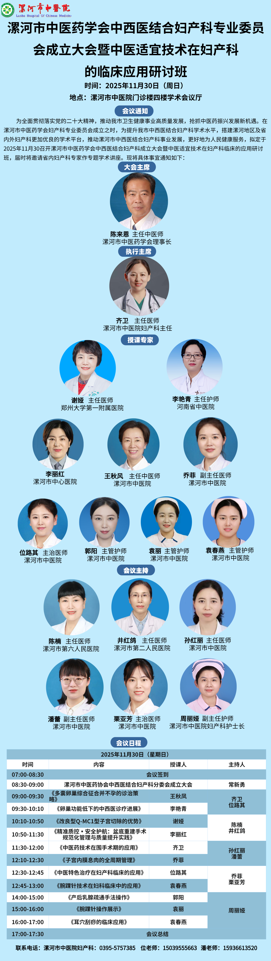 【學術通知】11月30日,漯河市中醫(yī)藥學會中西醫(yī)結合婦產(chǎn)科專業(yè)委員會成立大會暨中醫(yī)適宜技術在婦產(chǎn)科的臨床應用研討班