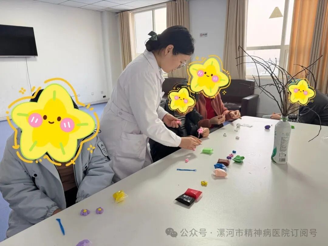 12月1日,漯河市精神病醫(yī)院心身醫(yī)學(xué)科的活動室,有點(diǎn)不一樣,沒有復(fù)雜的工具,只有幾包彩色粘土、撿來的枯樹枝,還有一群帶著期待的患者。醫(yī)護(hù)人員要做的,是把“春天”捏進(jìn)枯枝里,裝在喝完的飲料瓶里~