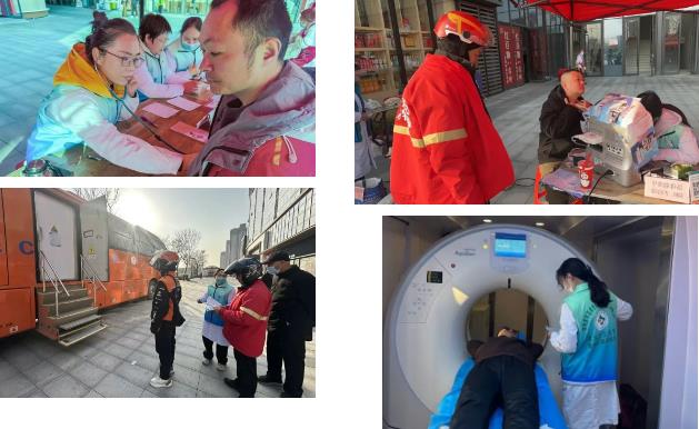 在紀(jì)委書記劉國(guó)鋒的帶領(lǐng)下,來(lái)自內(nèi)科、超聲科、醫(yī)學(xué)影像科等科室的骨干醫(yī)護(hù)組建專項(xiàng)志愿者團(tuán)隊(duì),針對(duì)外賣小哥長(zhǎng)期騎行、作息不規(guī)律的職業(yè)特性,定制了“高效精準(zhǔn)”的健康篩查方案——不僅涵蓋心電圖、甲狀腺彩超、血壓檢測(cè)、骨密度檢測(cè)等基礎(chǔ)項(xiàng)目,更調(diào)配院內(nèi)先進(jìn)移動(dòng)CT車進(jìn)駐,讓小哥無(wú)需中斷工作,利用送餐間隙就能完成全方位健康評(píng)估。