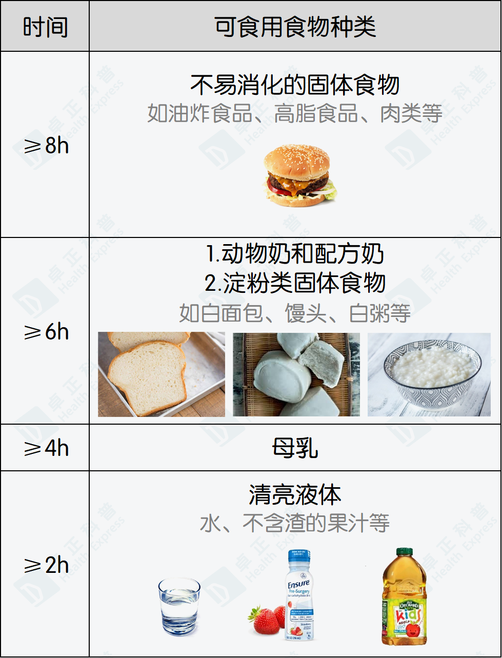 根據(jù)不同食物在胃里的“停留時間”不同,國內(nèi)相關(guān)指南規(guī)定,應(yīng)遵循“2-4-6-8”原則: