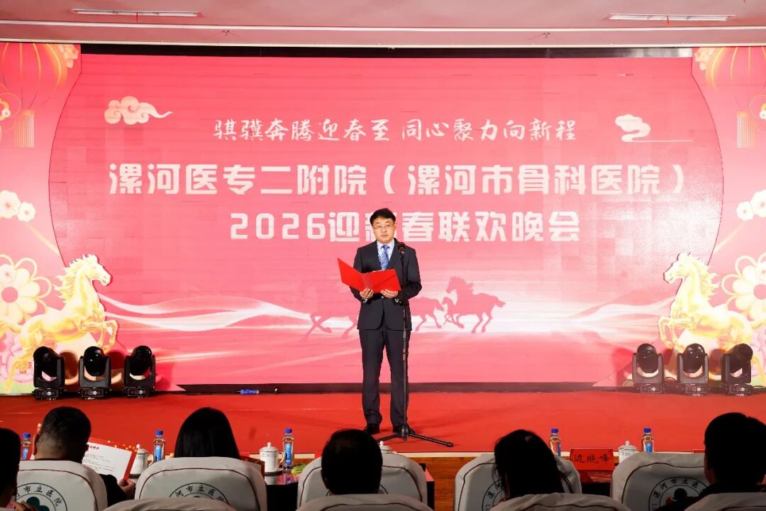 騏驥奔騰迎春至,同心聚力向新程。2月6日晚,當(dāng)璀璨的華燈照亮舞臺(tái),當(dāng)滿載喜悅的舞姿燃動(dòng)全場,漯河醫(yī)專二附院(漯河市骨科醫(yī)院、漯河市立醫(yī)院)2026年迎新春聯(lián)歡會(huì)拉開帷幕。