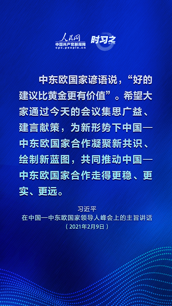 2月9日,國家主席習(xí)近平在北京以視頻方式主持中國—中東歐國家領(lǐng)導(dǎo)人峰會(huì)并發(fā)表主旨講話。中國—中東歐國家合作為何能保持旺盛生命力?新形勢下,中國—中東歐國家合作如何發(fā)展?人民網(wǎng)·中國共產(chǎn)黨新聞網(wǎng)“時(shí)習(xí)之”欄目摘錄了習(xí)近平的精彩講話,與您一起學(xué)習(xí)。