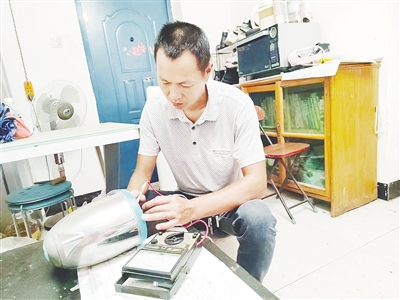 7月24日上午,記者在香堤左岸小區(qū)見到程凱亞時,他正在家修一個電水壺(如圖)。“這是參加社區(qū)志愿服務(wù)活動時,一位阿姨讓我?guī)兔π薜?。?dāng)時沒有修好,我就拿回來了,等修好了再給她送過去。”程凱亞告訴記者。