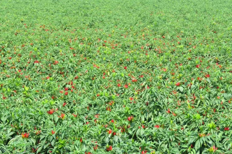 你看看:榮莉萊的辣椒直播大田表現(xiàn)非常的好,縱橫成行,合理密植,通風(fēng)透光,光合作用強,增產(chǎn)效果明顯,利國利民,一般畝增產(chǎn)都在300斤以上,每畝純收入5000多元,值得在省內(nèi)外推廣。榮莉萊的這種小麥套種辣椒的種植模式適用于在河南、安徽、山東、河北、天津、陜西、山西、新疆等中北部地區(qū)大面積機械化推廣種植。目前,已經(jīng)在省內(nèi)外推廣這種種植模式在10萬畝以上。同時,這種麥椒套種畝產(chǎn)小麥在1000斤以上,既保證了糧食安全,又增加了經(jīng)濟收入,是今后大面積推廣種植的方向。