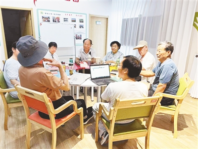 為什么要在一起讀書?“我們就住在附近。雖然退休了,但大家一致認(rèn)為要堅(jiān)持學(xué)習(xí),跟上時(shí)代步伐。我們經(jīng)常聚在一起讀書,不僅學(xué)習(xí)中華優(yōu)秀傳統(tǒng)文化,還集體閱讀時(shí)事新聞、保健知識(shí)、生活常識(shí)等方面的內(nèi)容,并交流心得、分享體會(huì)。”82歲的王浩山說,后來,他們就把讀書會(huì)固定到每周二、周五下午3點(diǎn)至5點(diǎn)舉辦,自愿參加。讀書會(huì)多則七八人、少則四五人,氛圍很好。