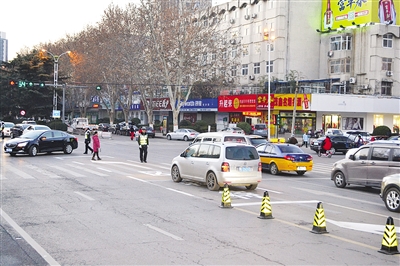 高東杰說:“黃河路與黃山路口的‘左轉彎待轉區(qū)’作為試點,下階段,將在全市符合條件的路口進行推廣。”(王艷彬)