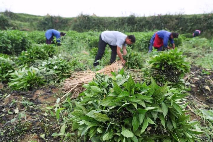 △2017年10月,貴州丹寨縣農業(yè)產(chǎn)業(yè)扶貧項目——板藍根種植喜獲豐收。(圖自視覺中國)
