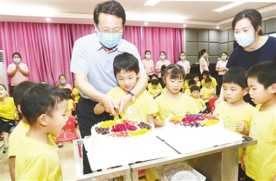 6月1日,市委書記蒿慧杰在市兒童福利院與小朋友們一起切蛋糕并分享節(jié)日快樂。記者 王慶建 攝