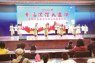 8月22日上午9時許,在許慎文化園會議大廳里,孩子們誦讀經(jīng)典的聲音此起彼伏。當天上午,為期42天的“幸福漯河大家讀”——2020暑期公益晨讀活動正式落下帷幕。今年晨讀活動范圍更廣,人數(shù)更多,家長和孩子踴躍參與,引來眾多關(guān)注的目光,也必將對少年兒童的成長產(chǎn)生廣泛、深遠、積極影響。