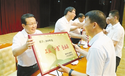 9月2日,市委書記蒿慧杰向工業(yè)“十強”企業(yè)代表頒獎。記者 王慶建 張 佩 攝