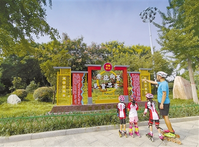 市科教文化藝術(shù)中心廣場(chǎng)東門(mén)口,漯河籍“中國(guó)好人”景觀吸引過(guò)往市民關(guān)注。記者 范子恒 攝