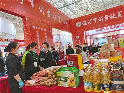 “全面小康,一個(gè)不落”“脫貧攻堅(jiān)大舞臺(tái),有你參與更精彩”“以購(gòu)代捐解民憂,消費(fèi)扶貧助發(fā)展”……在漯河市消費(fèi)扶貧展會(huì)上,紅色背景墻上處處都是與“扶貧”相關(guān)的宣傳標(biāo)語(yǔ)。香菇、鴨蛋、紅薯等富有特色的農(nóng)產(chǎn)品令采購(gòu)商們收獲滿滿。