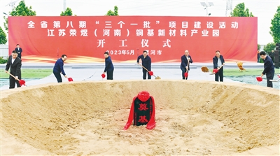 5月8日,市委書記秦保強等為臨潁縣江蘇榮煜(河南)銅基新材料產(chǎn)業(yè)園項目培土奠基。