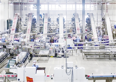 忙碌有序的衛(wèi)龍生產(chǎn)車(chē)間。記者 焦海洋 攝