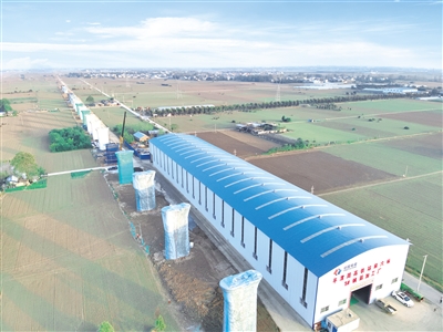 沿著平漯周高鐵線路向東北方向行進(jìn),記者來到了平漯周高鐵中國電建站前六標(biāo)漯河示范區(qū)制梁場(chǎng)。該制梁場(chǎng)位于黑龍?zhí)舵?zhèn)老應(yīng)村,劃分為原材料實(shí)驗(yàn)區(qū)、混凝土拌和區(qū)、鋼筋加工區(qū)、制梁區(qū)、存梁區(qū)等7個(gè)功能區(qū)。
