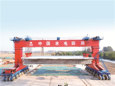 平漯周高鐵中國電建站前六標(biāo)漯河示范區(qū)制梁場(chǎng)內(nèi)移梁機(jī)。張 劍 攝