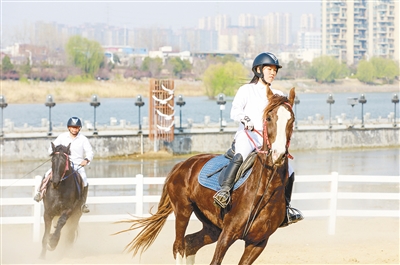 春光明媚,微風(fēng)和煦,沙澧河風(fēng)景區(qū)游人如織,中科花鹿名馬俱樂部銀灘樂園基地“汗血寶馬”項目吸引了眾多游客和市民。這是中科花鹿農(nóng)業(yè)發(fā)展有限公司正在實施的文旅體融合項目,設(shè)有馬術(shù)教學(xué)、皇家馬車乘坐和寶馬騎行等多種沉浸式體驗活動。