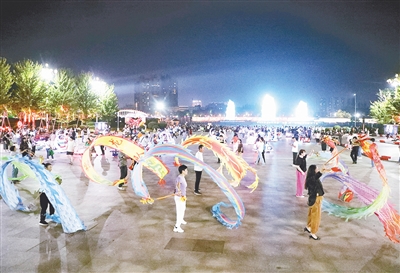 九月十六日晚,紅楓廣場,一支舞龍隊(duì)正在表演。