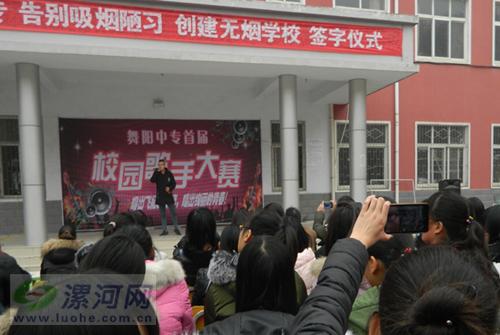 唱出飛揚的激情,唱出絢麗的青春,12月24日下午,在綜合樓前北操場,舞陽中專全體學生、評委、校領導濟濟一堂,舞陽中專首屆校園歌手大賽決賽拉開了帷幕。