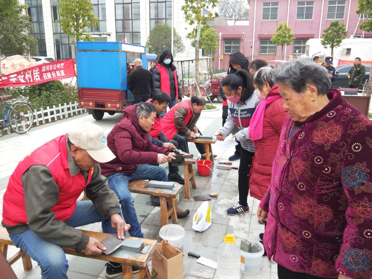 活動(dòng)現(xiàn)場(chǎng)剛布置好,村民們就拿著菜刀、剪刀,來(lái)到了活動(dòng)現(xiàn)場(chǎng)等候,見(jiàn)到到來(lái)的村民們,磨刀師傅王躍偉、王留義、馮三喜、閆軍倉(cāng)、王秀根立馬擺開(kāi)架勢(shì)給大家磨起了刀,大家都露出了滿意的笑容。村民們紛紛表示:“磨剪子戧菜刀”的手藝人越來(lái)越少了,在家里也很少聽(tīng)到他們的吆喝聲了,家里很多刀具用的時(shí)間長(zhǎng)了,都有點(diǎn)鈍了,有的放的時(shí)間長(zhǎng)了,都生銹了,燕山路社區(qū)能來(lái)到我們村,做這樣的義務(wù)活動(dòng),真是太方便了。