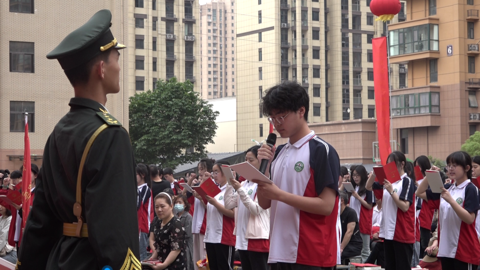 學(xué)生代表上前發(fā)言,他的講話(huà)發(fā)自肺腑、擲地有聲,道出了全體同學(xué)的決心和自信。十載寒窗,百日苦練,何人健步登金榜;一腔熱血,萬(wàn)丈豪情,我輩英才奪桂冠!