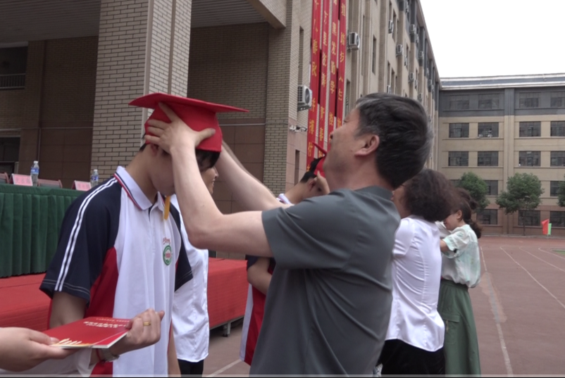 家長(zhǎng)、老師為同學(xué)們戴成人帽,頒發(fā)成人證書(shū)。加冠笄,明責(zé)任,各位領(lǐng)導(dǎo)為學(xué)生代表?yè)軇?dòng)象征成年的帽穗,頒發(fā)《中華人民共和國(guó)憲法》讀本。同學(xué)們戴上象征成人的冠帽,手握《憲法》,展開(kāi)對(duì)未來(lái)的美好憧憬與無(wú)限期盼。一頂頂成人禮帽,見(jiàn)證著每一位學(xué)子的長(zhǎng)大成人。全體同學(xué)起立,和父母交換信件,向父母深深地鞠躬,一個(gè)個(gè)溫暖堅(jiān)實(shí)的擁抱,一聲聲“爸、媽?zhuān)覑?ài)你”,讓在場(chǎng)的所有人為之動(dòng)容,熱淚盈眶。