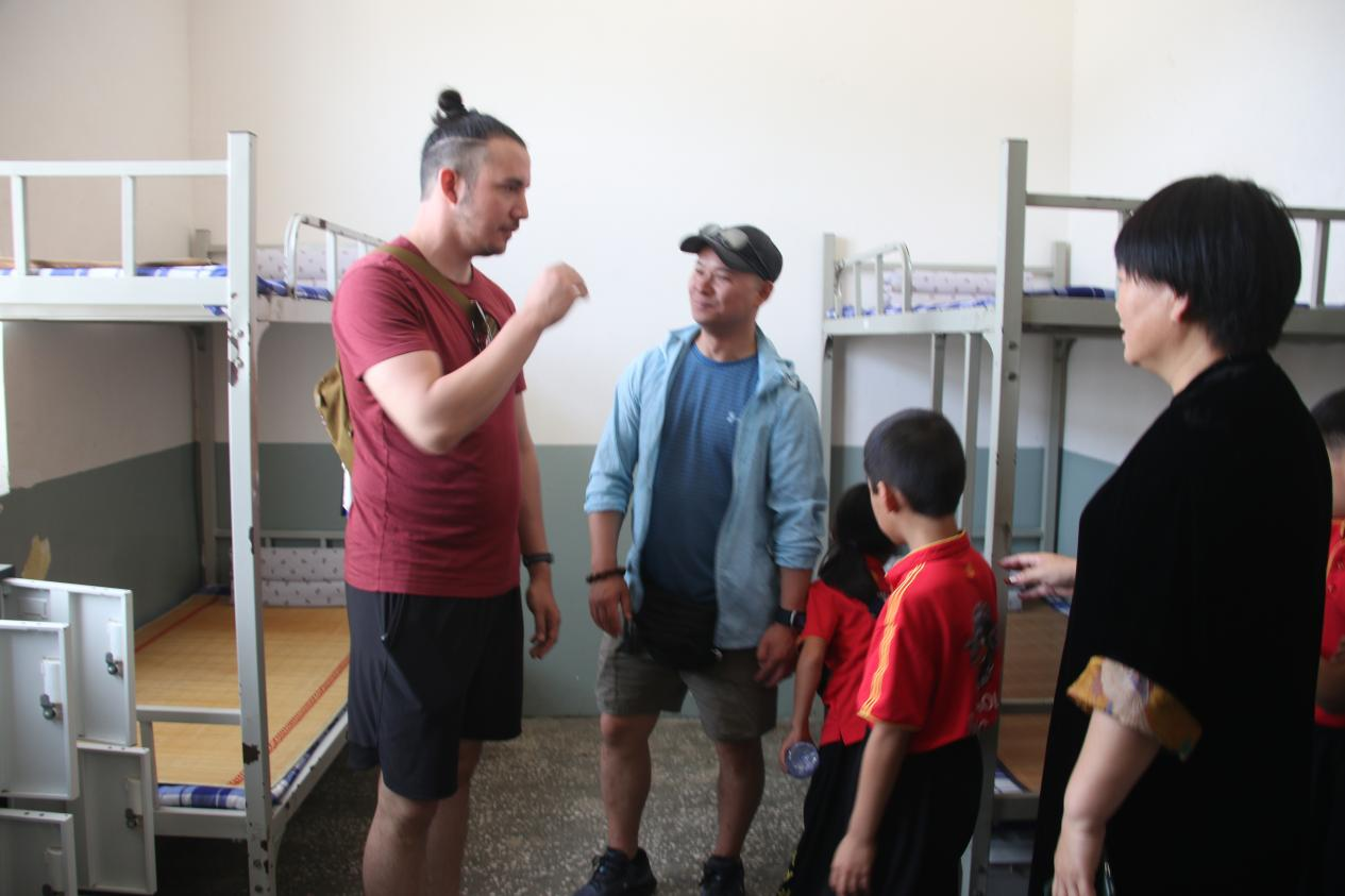 美國伊州少林功夫院的學(xué)員們一行22人,在臨潁縣慧輝文武學(xué)校校長魯曉輝的陪同下,先后參觀了文武學(xué)校的教室、寢室、餐廳、活動室、練功房等。