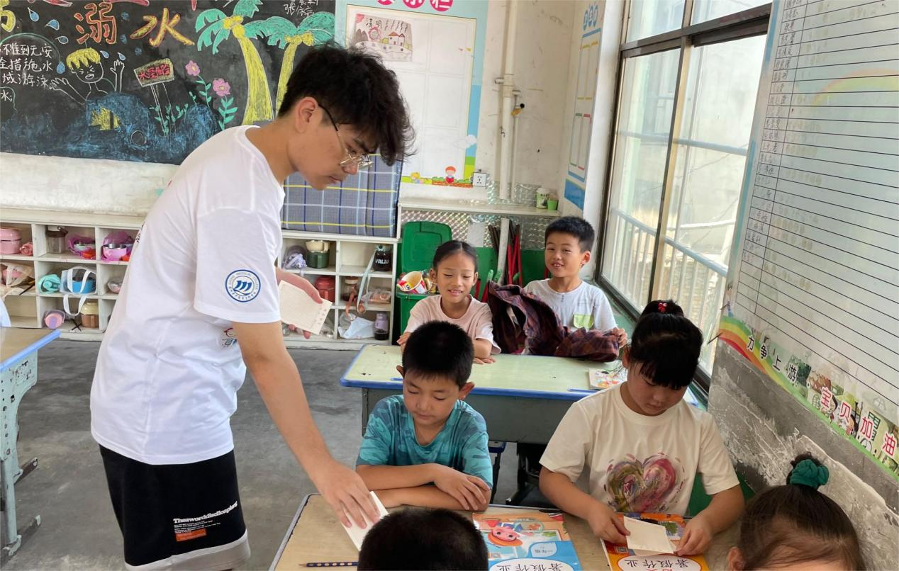 來自南昌大學(xué)瑪麗女王學(xué)院的20級學(xué)生譚秉曜參加暑期“返家鄉(xiāng)”活動(dòng),加入學(xué)校“彩虹支教隊(duì)”,利用自己的專業(yè)知識為學(xué)生科普了科學(xué)洗手,科學(xué)刷牙方面的知識”。