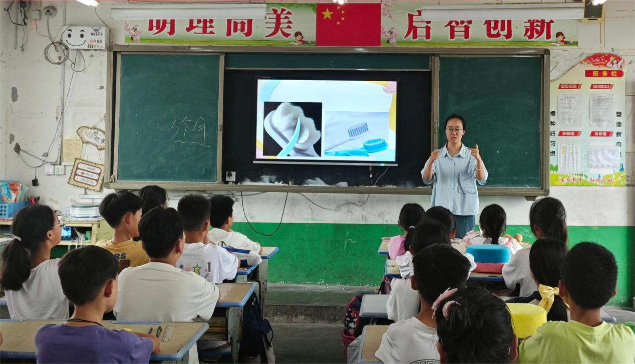“彩虹支教隊(duì)”在春芽小學(xué)開展支教活動(dòng)期間,在配合任課老師上好文化課之余,開展系列“醫(yī)路有我,守護(hù)健康”衛(wèi)生健康知識宣講活動(dòng),以生動(dòng)有趣的形式傳遞個(gè)人衛(wèi)生防護(hù)知識,幫助少年兒童筑牢健康生活理念。