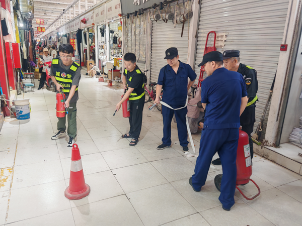 此次演練重點培訓(xùn)市場工作人員、保安、商戶面對突發(fā)火情怎樣快速、安全、有效的做出應(yīng)對,保障人員生命安全,使火災(zāi)損失降至最低程度。同時,熟悉應(yīng)急救援職責(zé)及流程并對市場商戶進行消防知識宣傳,切實提高市場職工、商戶的自防自救能力。