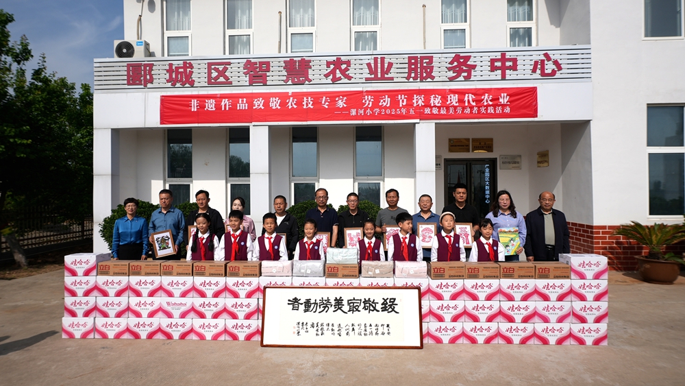 活動(dòng)伊始,漯河小學(xué)學(xué)生代表王彬宇、王鈺萱、田景銳、夏華苒深情朗誦獻(xiàn)詞《致敬農(nóng)技專家》。隨后,少先隊(duì)員們將精心準(zhǔn)備的剪紙、書法、繪畫等非遺作品贈(zèng)予農(nóng)技專家,以表達(dá)對(duì)這些“大地追夢(mèng)人”的崇高敬意。隨后,漯河市郾城區(qū)農(nóng)業(yè)農(nóng)村局黨組書記、局長(zhǎng)張韶杰等領(lǐng)導(dǎo)及農(nóng)業(yè)科學(xué)家團(tuán)隊(duì)代表登臺(tái),接受這份滿含童真與感恩的心意,并與少先隊(duì)員們合影留念。