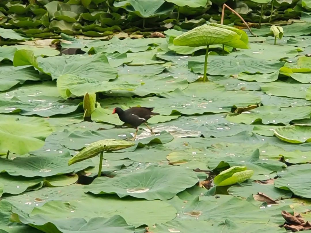 精細(xì)管養(yǎng):織就湖面生態(tài)錦緞。“一日六巡兩清” 是養(yǎng)護(hù)人員養(yǎng)護(hù)日志里的工作準(zhǔn)則。每天9點前,養(yǎng)護(hù)人員就會駕駛打撈船完成第一次湖面漂浮物清理,到了15點還會進(jìn)行第二次復(fù)檢,力求讓落葉、雜物打撈干凈。通過優(yōu)化水體循環(huán)系統(tǒng),湖內(nèi)已形成"荷花—微生物—水鳥"的微型生態(tài)鏈:荷花根系固定淤泥、凈化水質(zhì),為魚蝦提供庇護(hù);水草適度生長為鳥類提供天然食物,鳥兒橘紅色腳掌劃開水面的畫面,已成荷塘靈動一景。