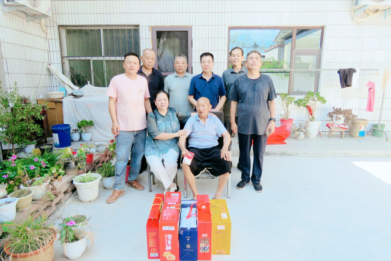 圖為臨潁縣和許昌市的部分參戰(zhàn)老兵郭群周、范花杰、封俊杰、宋國現(xiàn)、軒根慶等戰(zhàn)友一起,陪同湖南省永州市道縣退休女教師、愛心人士施羿,親切看望和慰問了全國一級“戰(zhàn)斗英雄”李海欣烈士的父親李銀秀,并為老人家捐贈了慰問品和慰問金。