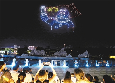 8月21日晚8時(shí)許,千架無人機(jī)在河上街景區(qū)騰空而起,瞬間點(diǎn)亮夜空?;鸺?、身著航天服在太空漫步的宇航員、繞地球飛行的天宮空間站……當(dāng)晚的千機(jī)飛“只有漯河”展演活動(dòng),以“太空之旅”為主題,吸引了眾多市民和游客。記者看到,市民、游客紛紛舉起手機(jī)、相機(jī),定格精彩瞬間(如圖)。