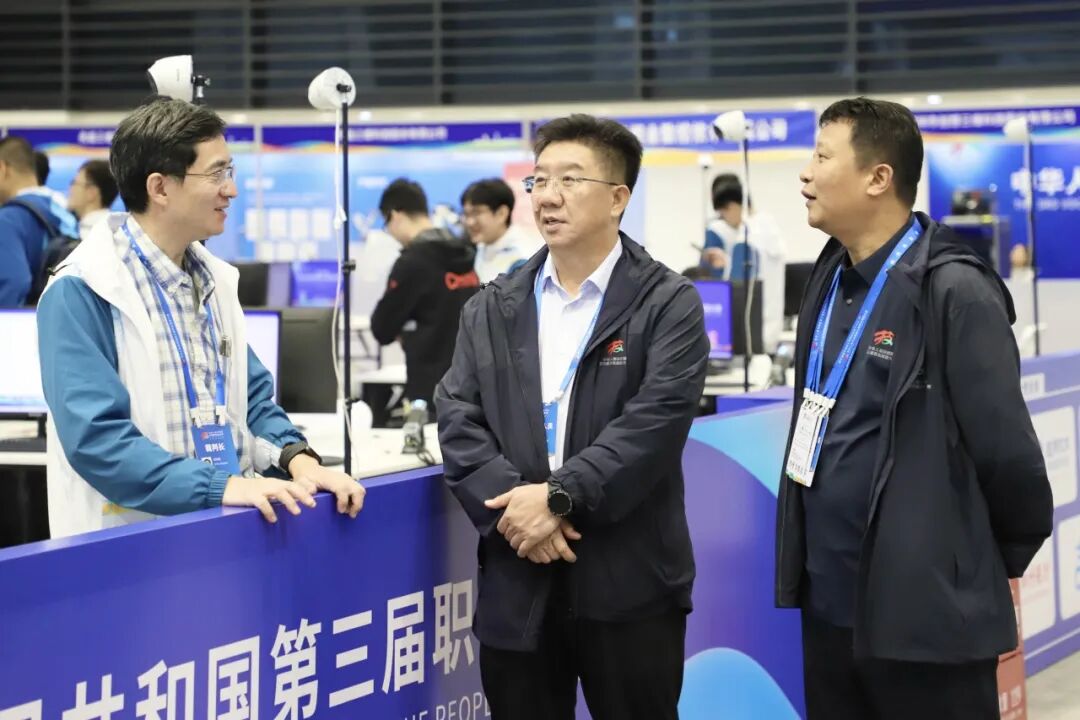 市人社局黨組成員、漯河技師學院黨委書記馬占欣一行先后到機器人系統(tǒng)集成、CAD機械設計、自主移動機器人、工業(yè)視覺系統(tǒng)運維、網(wǎng)站技術、平面設計技術等賽項現(xiàn)場,察看競賽環(huán)境、詢問工作進程,并與賽場工作人員就賽前培訓、選手報到、技術保障等內(nèi)容深入交談。