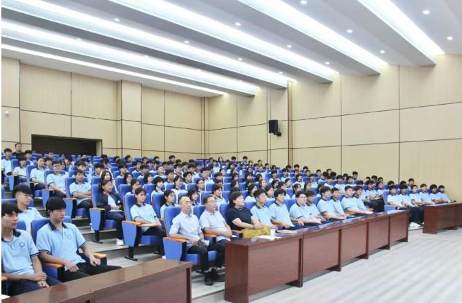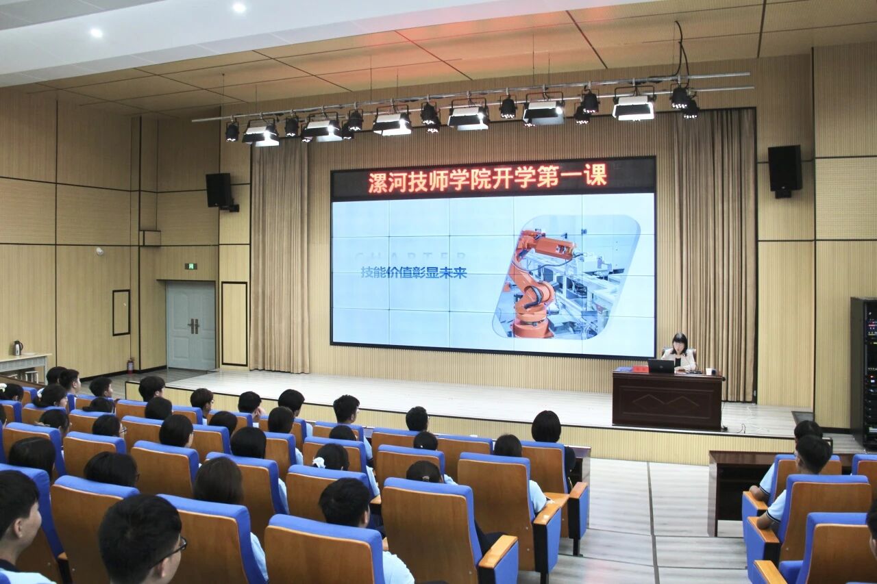9月9日,漯河技師學院院長馮凱在潤德樓308報告廳以《技能照亮前程,勞模工匠領航》為題,為2025秋季新生講授“開學第一課”,以有高度、有深度、有情懷、有溫度的思想政治理論課形式,點燃漯技學子逐夢技能的報國熱情。活動由學院黨委副書記范偉鋒主持。