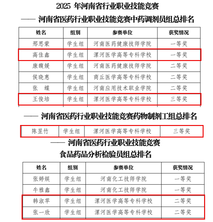 漯河醫(yī)專在河南省醫(yī)藥行業(yè)職業(yè)技能競賽中榮獲一等獎