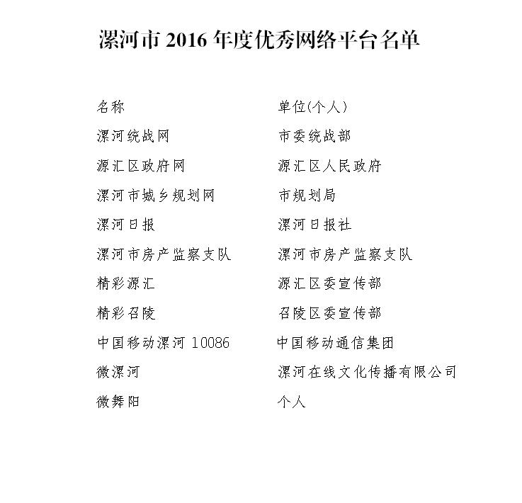 3. 漯河市2016年度優(yōu)秀網(wǎng)絡(luò)平臺(tái)名單