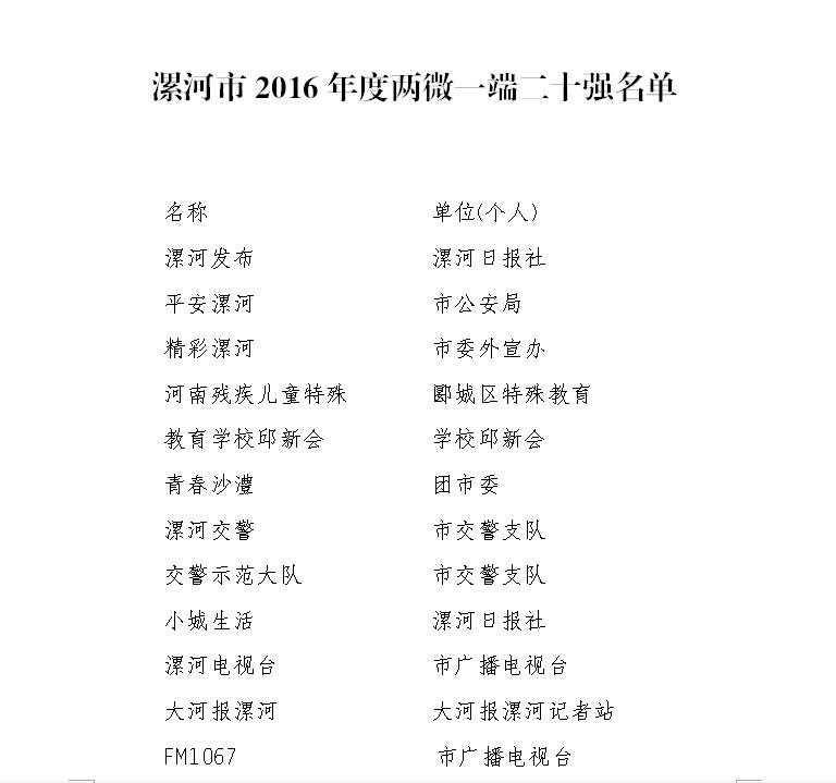 2. 漯河市2016年度兩微一端二十強(qiáng)名單