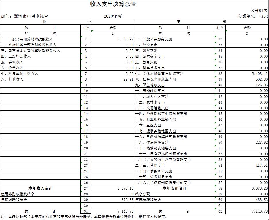 2020年度收、支總計均為7146.73萬元。與上年度相比,收、支總計各減少500.21萬元,下降6.54%。主要原因是廣告收入下降;機(jī)構(gòu)改革,人員減少。