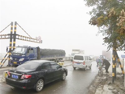 11月29日,記者看到網(wǎng)友“僅此而已”發(fā)的消息后,來到了107國(guó)道沙河橋看到,在107國(guó)道由南向北方向車輛較多,行駛緩慢。橋西半幅依然限高,而橋東半幅的限高桿已經(jīng)打開,在東半幅橋面中間,有一些石墩把橋面一分為二,由南向北的車輛走東半側(cè),由北向南的走西半側(cè)。